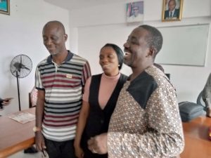 L-R: Gboyega Oni, Chairman MARAN Caretaker Committee, Mrs Pearl Ngwama and Fabian Anawo after their swearing-in in Apapa on Thursday