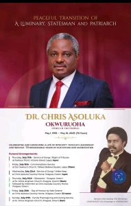 Late Dr Chris Asoluka for Burial July 24th, As Family Releases Funeral Programme