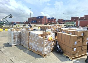 “In the period under review, 1 pistol, 2 magazines and 12 rounds of live ammunition, 1 by 40 foot container carrying 6,662 cartons of antibiotics of various brands. Also, another 20foot container GCLU1275880 falsely declared as supermarket items, but upon 100 percent examination found to contain pharmaceutical drugs.